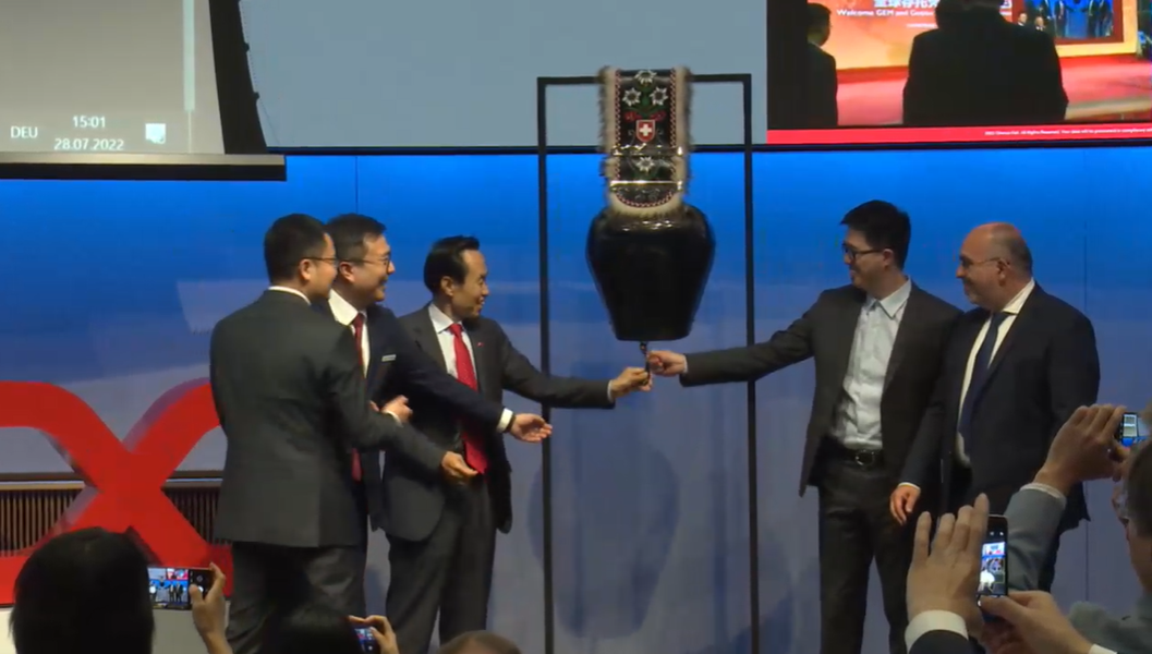 7月28日晚9點(diǎn)(瑞士時(shí)間7月28日下午3點(diǎn)),瑞士證券交易所正式啟動(dòng)“中瑞股市互通”的 GDR 部分,作為首批中國(guó)公司之一,杉杉股份GDR正式登陸瑞交所。