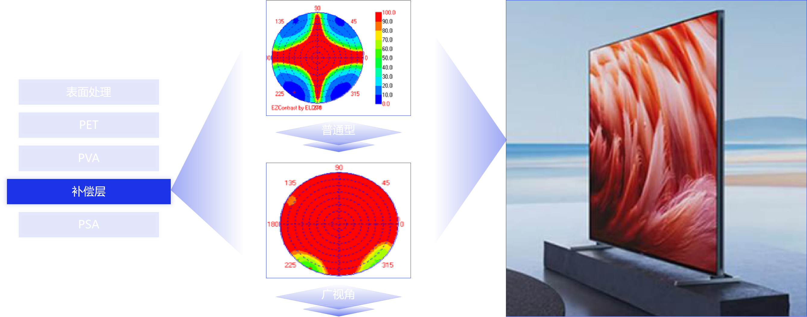 在大尺寸偏光片方面,杉金光電填補了我國在大型偏光片生產制造項目的空白,并成功突破了大尺寸偏光片在高溫高濕環境中收縮漏光、強光環境反光等問題,為TV等產品帶來了更廣的視角和更亮、更清晰的畫質。