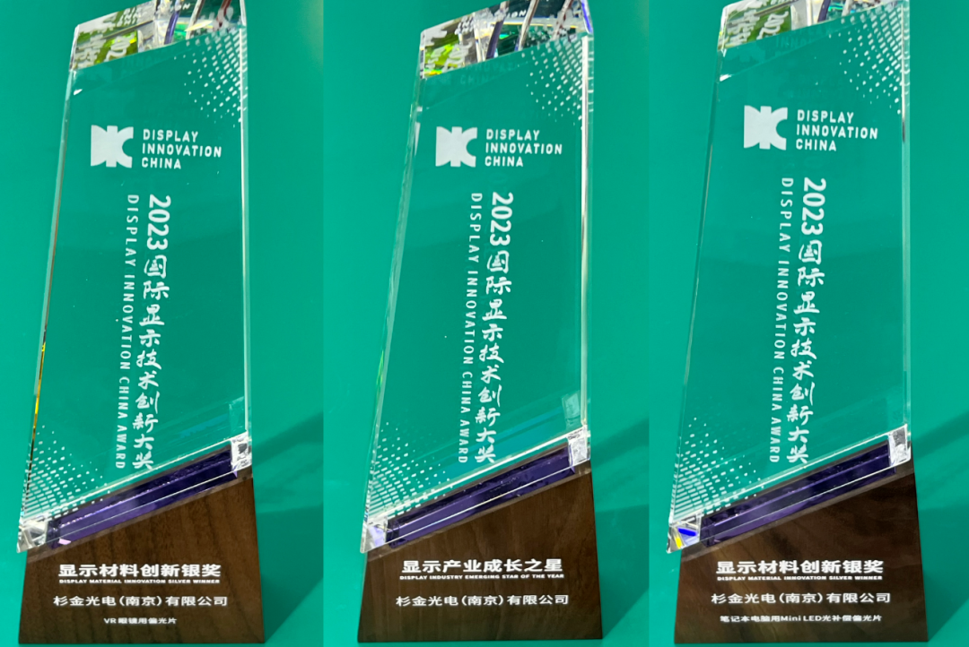 杉金光電中小型偏光片也在本次展會斬獲頗豐,VR眼鏡用偏光片及筆記本電腦用Mini LED光補償偏光片均榮獲顯示材料創新銀獎。