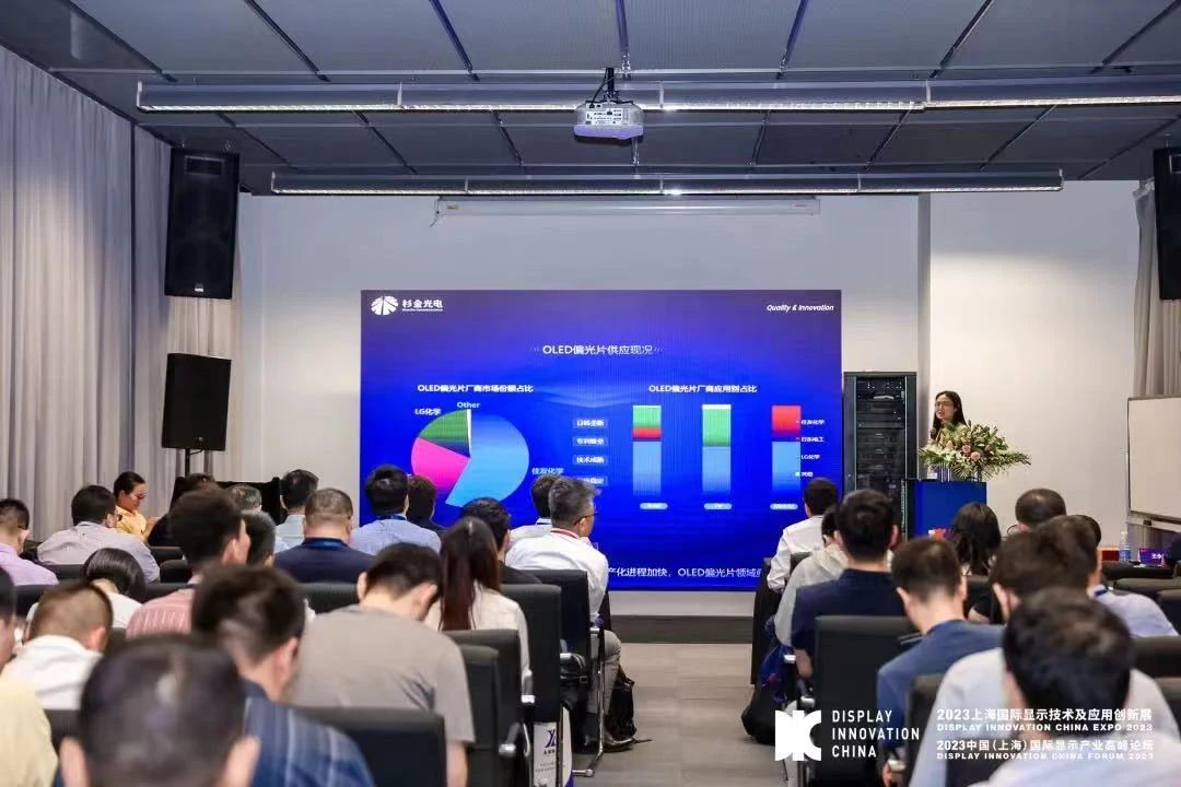 在8月30舉行的DIC EXPO平行論壇上,杉金光電研發總監楊前前發表了《OLED顯示技術下偏光片的技術創新與發展》主題報告。她詳細解讀了OLED顯示技術的發展現況、OLED用偏光片產業鏈現況及技術創新與方向。楊前前表示,OLED和車載用偏光片預計每年將維持8%以上的高速增長趨勢,市場前景廣闊。
